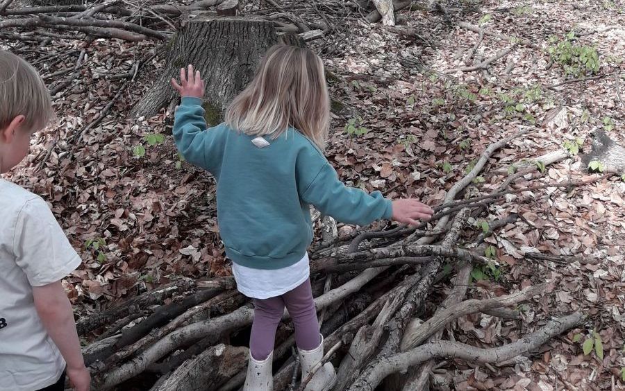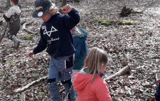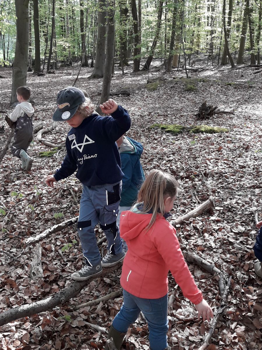 Bei wunderschönem Wetter haben sich unsere kleinen Forscher*innen auf ein neues Abenteuer eingelassen: „Querfeldein über Bäche und Schluchten – Oder: Wir bauen Brücken!“