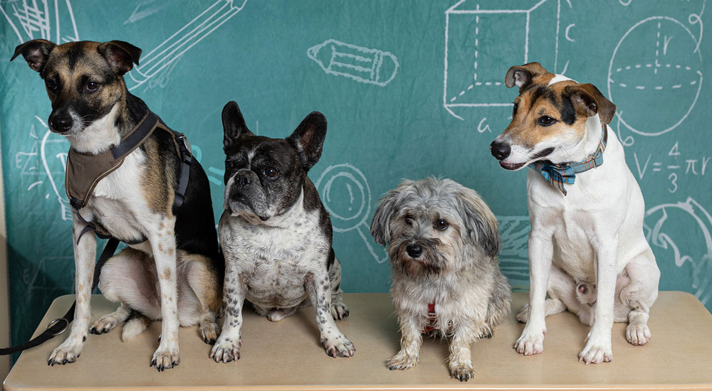 Unsere Schulhunde: (von links nach rechts:) Lotta, Norbert, Lissy und Rudi